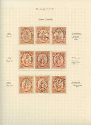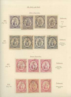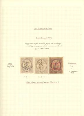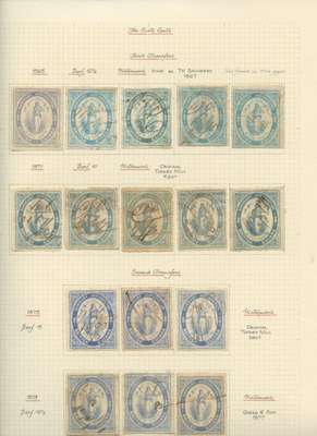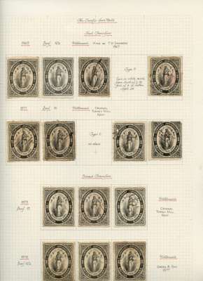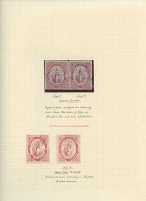 Summary Jurisdiction: 1866-1901, a comprehensive study of transfer types present on the plates of all values to 96c, Sorted by printing on 8 pages, with notes identifying flaws and positions underneath each stamp. A truly remarkable study which could only be put together with decades of research. An important lot for the specialist or exhibitor which has to be seen to be believed.