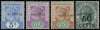 1899 'REVENUE' overprints 5c to 50c complete set of four, each showing minor variety 'Tall narrow U', from position 5 of the setting, large part o.g. 25c with yellowish gum, though the key 50c very fine. cat £300+ as normals. McClellan R1/4var | SG 66/9var