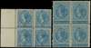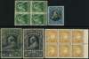 Small collection on stock cards comprising 1864 BILL STAMP first issue 7c and $3 in mint blocks of four, 1868 3rd issue 3c Green IMPERFORATE BLOCK OF FOUR and $1 imperf single, two Dead Letter Office seals (used) and KGV 2c War Tax Booklet pane. Van Dam FB7, FB17, FB40c, FB52b cat $700+