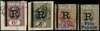 1911-12 Wmk Crown CA 6d dull purple, KEVII 5s green and black, with the two high values, £3 on £1 grey-black and ultramarine (surcharge in red), and £5 on £1 grey-black and ultramarine, all fine used. A remarkable lot, the 6d value not seen by McClelland and unlisted, the two high values major rarities with only a handful of recorded examples known of each. McClellan R61, R63/4.