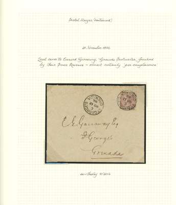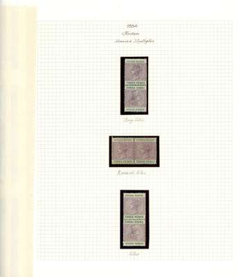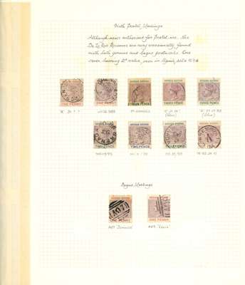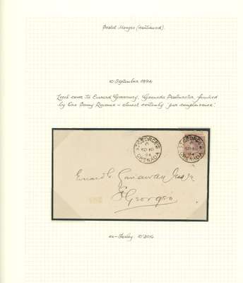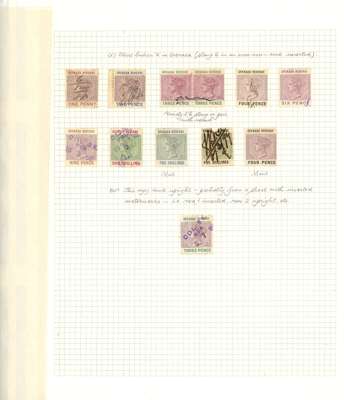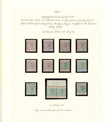 1884 DLR keyplate issue, Intact collection written up on pages 1d. to £1 set of eleven unused, 3d. tête-bêche pair and £1 marginal pair; postally used values to 6d, 1d. and 4d. on local St. George's covers, document pieces showing multiple frankings and usage, watermark studies, and detailed research. A lovely lot, portions of which are ex Foxley. McClellan R51/61