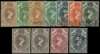 1879 Bradbury Wilkinson 'Bourne Head' issue 1d to £5 fine used set to £5, offered with 4d imperforate colour trials (2) in unissued grey-brown, both without gum ex Bradbury Wilkinson Archives. A most attractive group of these popular issues.