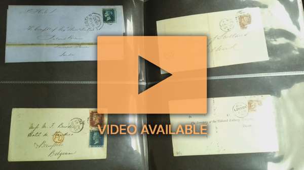 Postal History. Red SG cover album with varied accumulation with 1841 covers franked 1840 1d and 2d single frankings, each with four margins, the 1d with small fault at top right, other line-engraved, surface-printed, Jubilees including 1898 5d cover to India with London Hoster cancel, KEVII, KGV with airmails including 1933 registered cover Bradford to Brazil with franking including 5/- (2) and 10/-, KGVI with censored mail; fair to fine (180)