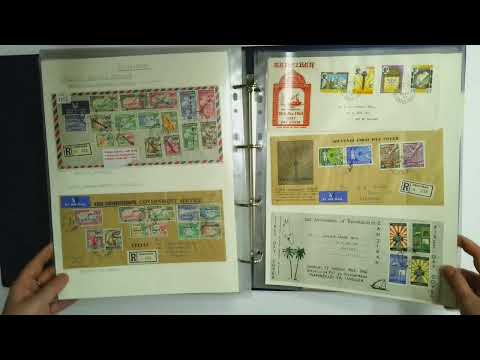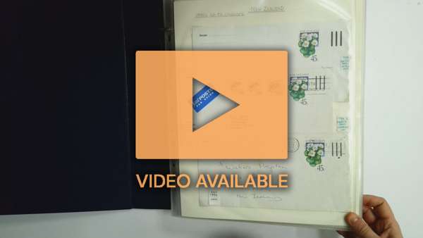Postal History. Large blue SG cover album with mostly long or outsize covers (95) and 4 other items (NZ fiscal pieces). Many complete sets with good items from Niue, North Borneo (1895 surcharge set), N. Rhodesia, Oil Rivers (SG 1-6), Papua, Saints, Sarawak (1950 set), S. Africa, Tanganyika, Turks & Caicos and Zanzibar