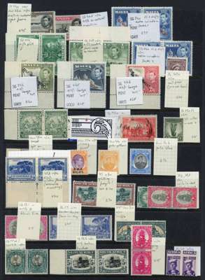 British Commonwealth KGVI mint selection of small plate varieties arranged on Hagner sheets with many in blocks, etc. Generally fine. (scores)