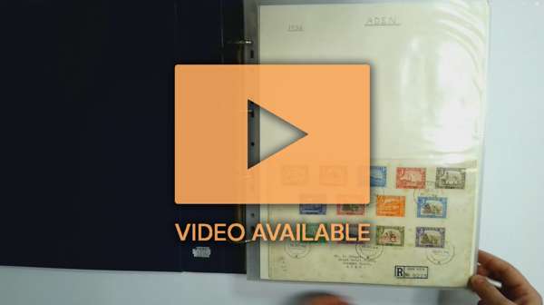 Postal History. Large blue SG cover album with mostly long or outsize covers (81) and 8 pieces with India used at Dubai. Many complete sets with good items from British Honduras (1907 50c on Kiderlen cover), Kedah, NZ (SG O146/a pair on cover), South Africa Officials, SWA, Antigua, Bahamas, Bahrain, KUT (1933 set to 10s) etc
