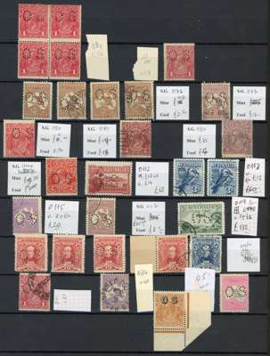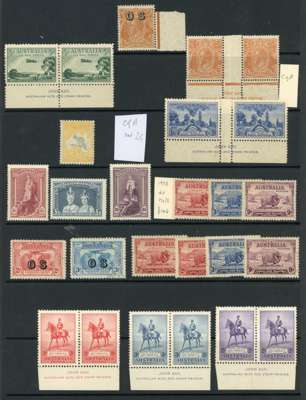 KGV-QEII mint and used selection arranged on large stockcards including Kangaroos, KGV heads mint range with value to 1s4d including selected blocks some with imprints. Also an assortment of officials. Mostly good to fine. (118)