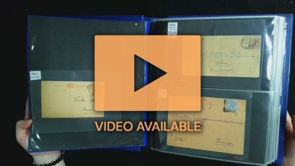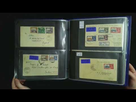 Postal History. Blue SG Major cover album with collection of covers (54), plus postal stationery (Specimen 1, unused 14 and used 11). A useful selection with some better frankings; SG 46 registered to Ulm, SG 83 on Wilson cover from Nicosia, SG 114 on Limassol to London first flight, SG 130 on registered cover to London. Other flown covers noted, also 1930 Sea Post “S.S.Belkas” to Alexandria, few Rural Posts, etc.
