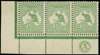 1913-14 ½d green, lower left corner horizontal strip of 3, (plate "2" with "CA" monogram), unmounted with minor gum bends, fine appearance, BW 1(2)za, SG 1