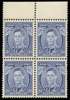 1938 3d blue Die I perf 13½ x 14 top marginal block of four, unmounted o.g., perfectly centred
