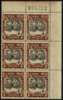 1945 2/- black and brown with multiple watermark sideways,u/m top right corner block of six with sheet number. SG 144, cat £228