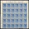 Official. 1882-85 2d blue, wmk 40, perf 11x12 (comb), block of 30 (6x5) being the upper half of a pane with full margins and "POSTAGE TWO PENCE" and "Row of Six. 10s. per Sheet of Sixty." inscriptions, R4/4 showing variety 8½mm space between "O" and "S" o.g. (stamps mostly unmounted). Minor toning on reverse, still remarkably fresh with lovely colour.