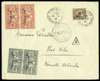 1932 (15 NO) incoming cover from Indochina, underfranked by 1931-41 "Junk" 1c sepia (SG 168), tied by "TINHBIEN / COCHINCHINE", dated "24 9 32" (additional strike alongside), with triangular "T" tax mark below. The deficiency paid on arrival by vertical pairs of the French Issue 1925 Postage Due 20c greyish-slate and 30c red, each cancelled by a central strike of "NEW HEBRIDES / VILA" cds, with an additional strike alongside. Backstamped at Hando (25 9), Saigon (26 9) and Noumea (2 NOV). Philatelic, and some cover wrinkling, but a rare and attractive usage.