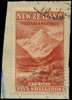 1898 Pictorials no watermark, perf 12 to 16 5/- vermilion used on piece with registration crayon, part cancels at top and base, fine. SG 259