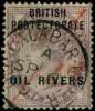 1893 (Sept.) ½d on half of 1d lilac unsevered pair, used with Old Calabar River CDS of SP 6. SG 7a, £450