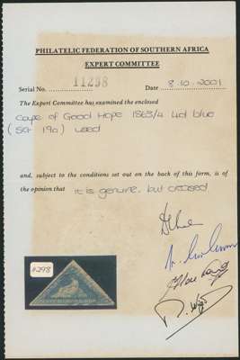 1863-4 4d blue with three good to large margins, lightly cancelled and fine. PFSA Certificate (2001). SG 19a, £140