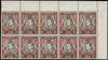1942-51 1c black and chocolate-brown perf 13¼ x 13¾ corner block of eight, unmounted o.g., R1/7 showing 'A' of CA in the watermark omitted; R1/7 also with spot on right crane, R1/10 with re-entered right frame. SG 131ab, £225