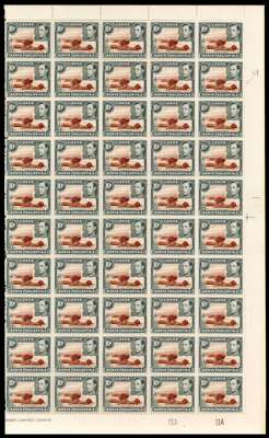 1952 10c brown and grey sheet of 100, Plate 13A-11A unmounted o.g., central vertical fold, fine. SG 136, £175