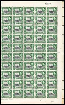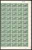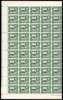 1951 15c black and green sheet of 100, Plate 3A, central vertical fold, some foxing affecting a few; some bends. SG 138, £300