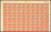 1941 20c black and orange perf 14 complete sheet of 100, Plate 3-5B. Of good appearance, despite a little staining on the selvedge, but the reverse is affected by numerous little foxed spots. A remarkable survivor. SG 139a, £5500