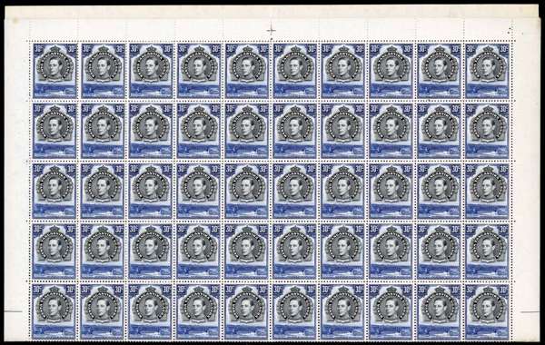 1942-52 30c black and dull violet-blue, perf 13¼ x 13¾ sheet of 100, Plate 5-4, two folds. Good opportunity for study. SG 141b, £325