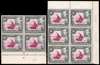 1949-54 50c perf 13 x 12½, with dot. Two blocks with fine shades, unmounted o.g. Imprint block of four (central fold) dated 9/51 in pencil, red-purple vignette as usual, and top right corner block of six dated 21/1/54 in pencil, the frame from a deeply-defined frame plate and the vignette in brown-purple. The latter block shows fine sky retouch on R3/9. SG 144e, £150