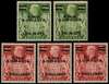 1948-50 BMA 2s50 two o.g. examples with 'T' guides in hair, no right crosspiece (one stained on reverse), and two 5s on 5r , each o.g. with R4/2 'T' guide in hair. And 1950 B.A. 5s on 5r o.g., R2/3 inverted 'T' in hair and strong re-entering to lion. SG S19-20, 31 vars