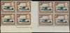 1949-54 1/- black and brown perf 13 x 12½, two unmounted o.g. positional blocks of four in contrasting shades and on different papers. One with part imprint, ‘fish’ right of rushes on R10/4; the other lower left corner, with R10/1 small retouch in sky below first ‘U’ of UGANDA. SG 145b