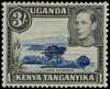 1947 3/- deep violet-blue and black, perf 13 x 11¾ with R6/7 'damage on mountain', lightly hinged o.g.; lightly toned, still a very good example of this rare stamp, ex Cooper. SG 147ab, £7000