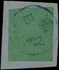 1857 6d green, a small cut-into example tied to piece by blue circular cancel; attractive. SG 4, £1600