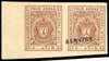 Official. 1908-11 4a brown imperforate pair, the left stamp without overprint, which appears at an angle on the right stamp. Unused, without gum; unlisted, a striking item. SG O308c var