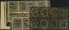 Official. 1887-94 laid paper multiples with ¼a black corner block of four, 1a corner pair, 2a corner block of four and 4a block of eight, the latter rather soiled on the reverse and with some creasing; still a good group. SG O12, 14-16, £940