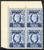 1949 10r on 10/- ultramarine top left corner block of four, unmounted o.g. SG 60a, £240
