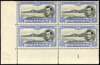 1938 3d black and ultramarine lower left corner block of four with Vignette Plate 1, unmounted o.g. SG 42, £400