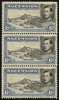 1944-53 6d black and blue perf 13 vertical strip of three, the middle stamp with R5/4 'boulder' flaw. Difficult in any sort of multiple