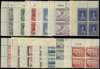 1941-44 Perf 12½ set of 14 to 48c, Waterlow printing, in blocks of 4, corner marginal (except 15c top marginal, otherwise upper left or lower right - 25c only) with 12 values (except 4c, 7c and 24c) showing plate numbers, unmounted o.g. Odd gum bends but scarce and most attractive.