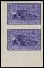 1942 50c War Effort lower left corner imperforate pair, guideline at lower left, unmounted o.g. Minor wrinkles, otherwise fine, unusual in a positional piece. SG 387, £850