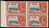 1935 Silver Jubilee 1d deep blue and scarlet, left marginal block of 4 with centre guide from vignette plate '5', lower left stamp showing variety 'Flagstaff on right-hand turret' (R7/1), very fine o.g. Only 642 possible, from Jan 1935 first printing (2564 sheets, from four vignette plates).