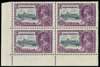 1935 Silver Jubilee 25c slate and purple, lower left corner block of 4 from vignette plate '1', showing variety 'Extra flagstaff' on R9/1, fine unmounted o.g. and very scarce thus. Total printing only 940 sheets, from six vignette plates.