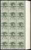 1942 Landfall £1 grey-green and black, ordinary paper, block of 15 (3x5) with wide sheet margin at right (R3-7/4-6), unmounted o.g. Odd slightly shortish perfs, still a fine and interesting multiple, showing a range of opt varieties including a very prominent large dot in 'OF' (R6/5). Ex Len Mason, with his notes included.