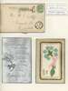 1905 pair of novelty postcards, one franked by ½d with Blackpool cds for AU 23 with a greeting and felt flowers attached to the postcard and subsequently struck with a ‘1d’ charge mark and ‘Contrary to Regulations’ instructional mark, the other similarly features felt flowers but was written and went unsent. (2)