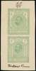1910 Hentschel 7d & 1/- colour essays in Verdant Green affixed to small piece of thin card (30 x 60mm) with annotations in m/s 'SP/93' and 'Verdant Green' at top and foot, most attractive.