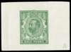 1911 Colour trial. Very fine imperforate example printed in bright-green on gummed unwatermarked paper, produced at Somerset House in 1911 for comparative purposes with the new Georgian colours. See Specialised Vol.2 catalogue pg.78.