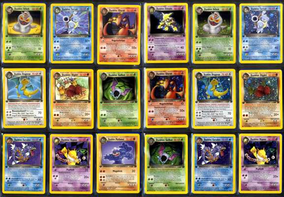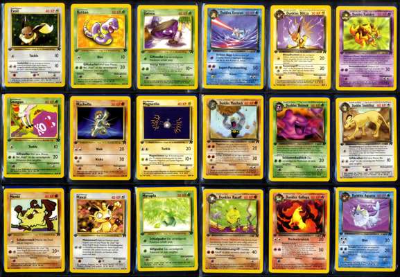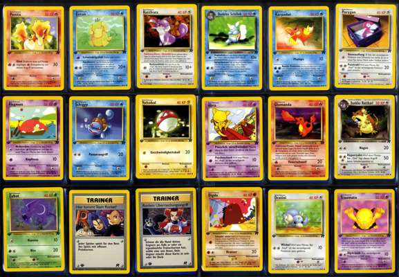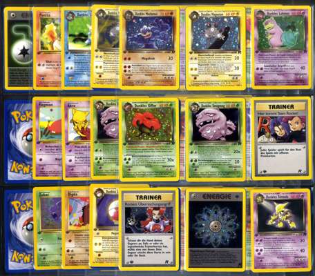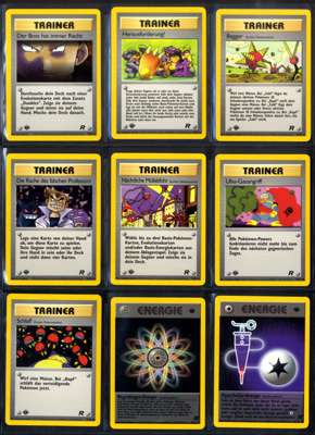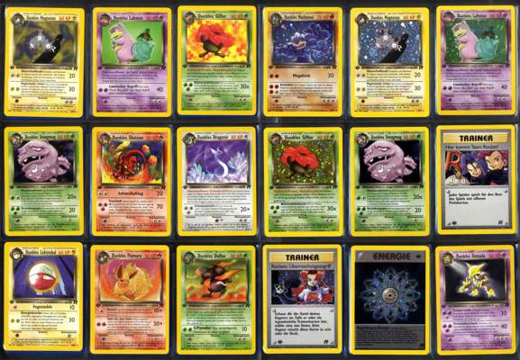 Team Rocket, the dastardly villains of the Pokémon world feature in the fourth official TCG expansion originally released in the year 2000. This complete 1st edition set is in German, its incredibly hard to find a full set like this in the wild.