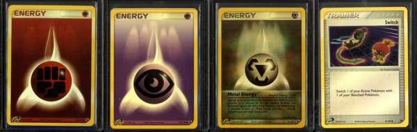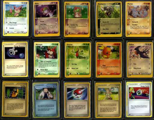 contains one of every reverse holo from the EX Ruby & Sapphire Base Set - please note the EX cards are not included but the reverse energies are! All cards are sleeved and safely secured in top loaders and in near mint to mint condition