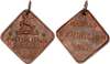 India, British Colonial. Madras CU Medal, Madras Exhibition Pass. 1917. MADRAS EXHIBITION, date below in three lines / George slaying dragon over Fort with palm trees by sea, lozenge shape, loop top mount intact as issued. 11.32g, 33.00mm, 12h.