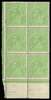 1918-20 ½d green, wmk 6a, lower left corner block of 6 (2x3) with interpane margin at left (reduced), the top left stamp variety Thin "1" in fraction at right (Plate 5, right pane, R8/1), o.g. Variety stamp with slight crease, still fine appearance and scarce in this positional form. (cat £142+)