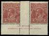 1926-30 2d red-brown, wmk 7, perf 14, lower marginal interpane pair with "MULLETT" imprint, o.g. with fresh colour. Minor toning but extremely scarce in this positional form. ASC BW98(12)z, cat A$800 (for block of 4).