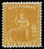 1875-81 6d yellow, wmk CC (sideways), perf 14, fresh large part o.g. with brilliant colour. Slight gum creasing still fine appearance with perfs and centring well above average. Scarce in unused condition. (cat £350)