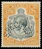 1924-32 12s6d grey and orange, Script wmk, variety "Break in scroll" (R1/12), perf "SPECIMEN" (type D19), fresh o.g. Tiny mark on one perf at right, still fine with lovely colours. Maximum of seven possible !